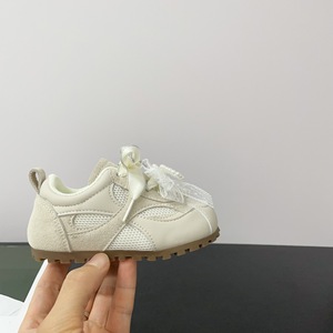 蕾丝串珠蝴蝶结公主风小清新学步小单鞋2025年秋款女童百搭小板鞋