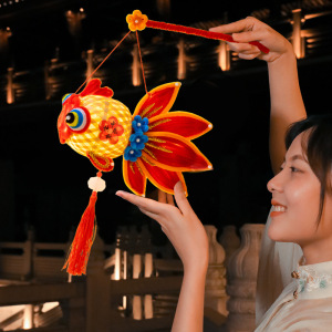 中秋节竹编锦鲤灯笼扭扭棒儿童手工diy材料包金鱼灯手提发光花灯