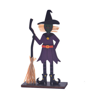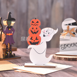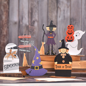 跨境新品万圣节装饰品摆件女巫幽灵彩绘木制摆件派对装扮道具摆件