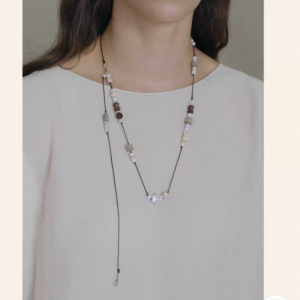 新款云松木珠串珠项链小众轻奢高级感多种戴法气质长款腰链卫衣链