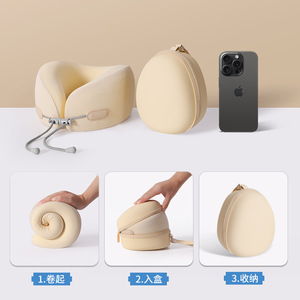 米色坑条纹颈枕+灰色皮革EVA收纳包