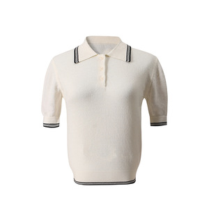 新款百搭薄软纯棉提花撞边短袖针织显瘦运动感休闲POLO衫女5115