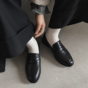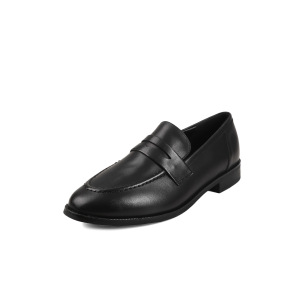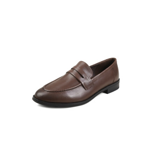 洋气舒适工装鞋头层牛皮2025秋季粗低跟乐福鞋圆头真皮深口单鞋女