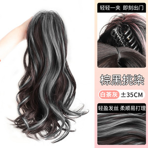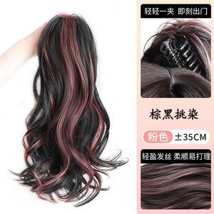 挑染马尾假发女长发抓夹瀑布卷发蓬松高颅顶喷泉假辫子瀑布卷马尾