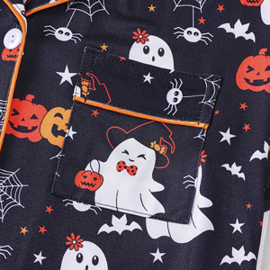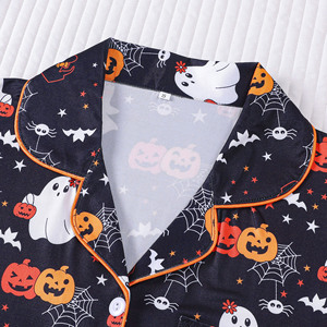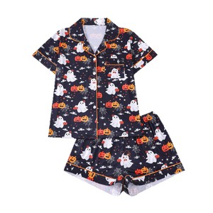 跨境外贸新款欧美女士睡衣万圣节印花翻领短袖短裤欧美家居服套装