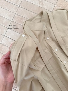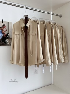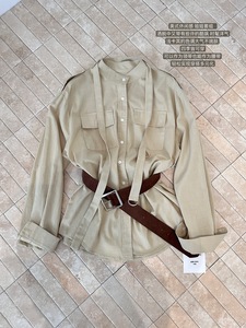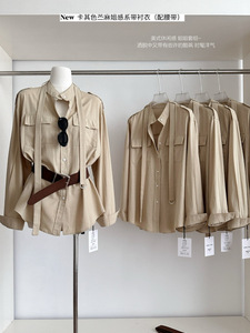 秋上新! 苏黎世 卡其色苎麻姐感系带衬衣