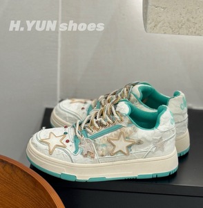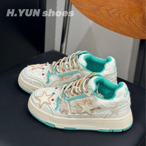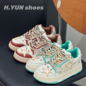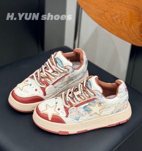 红韵~敦煌国潮小众黑玫瑰浮雕星星鞋女款百搭鞋子复古厚底