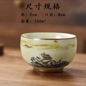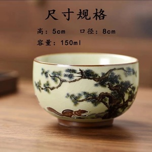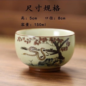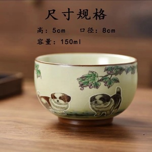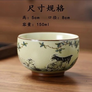 汝窑中式十二生肖禅定杯茶杯家用主人杯客杯开片可养品茗杯陶瓷杯