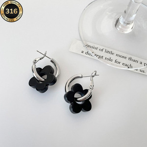 316欧美爆款黑色花朵耳环女甜酷气质耳饰设计感耳圈