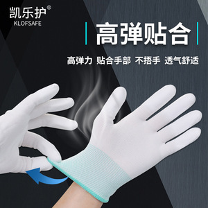 尼龙pu涂掌手套防滑耐磨工业作业涂胶无尘透气薄男女搬运精细