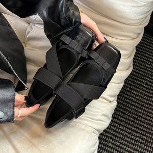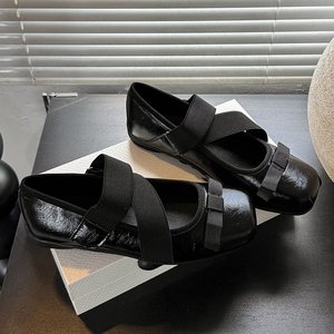 牛皮版~芭蕾风真皮蝴蝶结玛丽珍单鞋女银色厚底小皮鞋芭蕾鞋瓢鞋