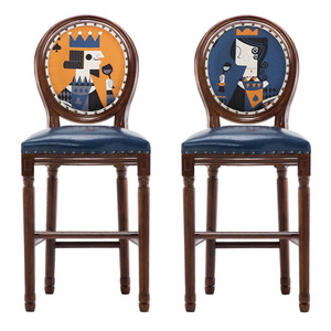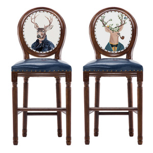 美式实木吧椅靠背创意吧台椅酒吧椅家用欧式高脚椅简约复古吧椅