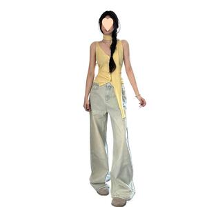 大码浅色水洗美式高腰牛仔裤女2025新款直筒宽松休闲显瘦阔腿潮流
