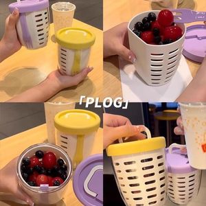 水果杯早餐沙拉带叉子便携式沥水双层外带野餐盒密封