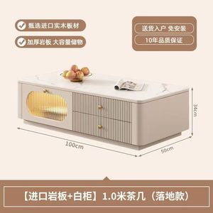 【进口岩板+白柜】1.0米茶几(柜腿款)