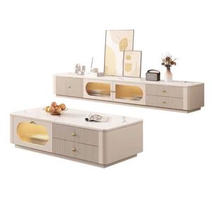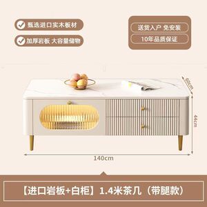 【进口岩板+白柜】1.4米茶几(柜腿款)