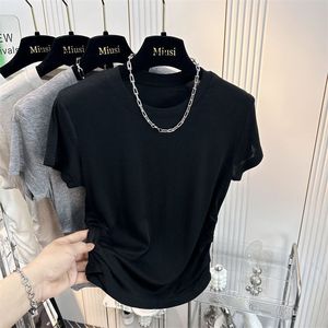 显瘦薄款天丝不规则上衣莱赛尔褶皱收腰修身正肩面膜短袖T恤女夏