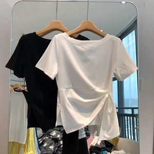 小心机设计感交叉收腰显瘦圆领短袖T恤女夏新款韩版莫代尔棉上衣