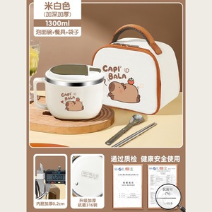 米白1300ml+折叠筷勺+保温袋【升级加厚抗菌304钢】
