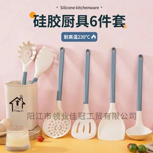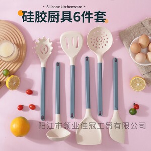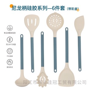 新款硅胶厨具6件套 跨境尼龙手柄硅胶锅铲汤勺烹饪套装耐高温厂家
