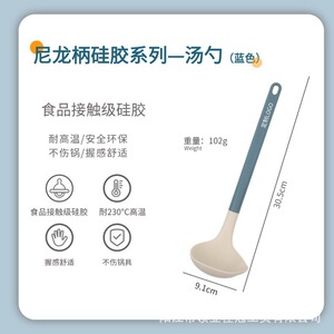 北欧蓝【汤勺】食品级硅胶/尼龙手柄