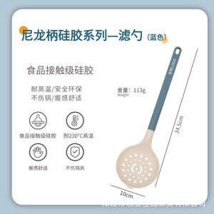 北欧蓝【滤勺】食品级硅胶/尼龙手柄