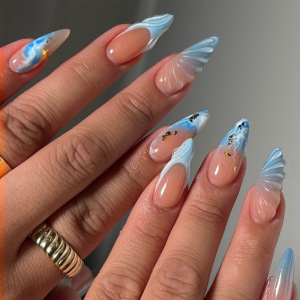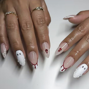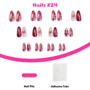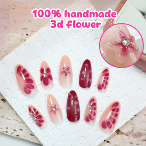 24片外贸假指甲贴手工跨境爆款穿戴甲花朵水钻欧美风美甲片成品