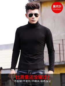 莫代尔男士高领打底衫长袖t恤春秋装体恤内搭加厚加绒保暖上衣服
