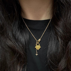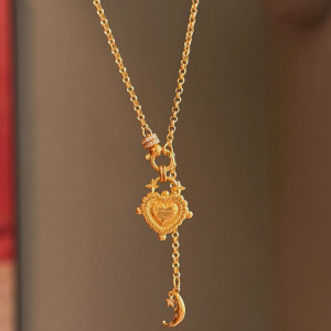 小红书爆款中古感"永恒的爱"爱心吊坠流苏项链复古风项链一件代发
