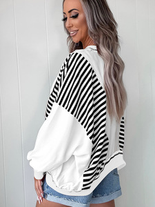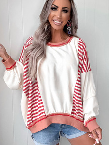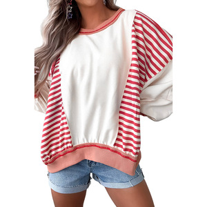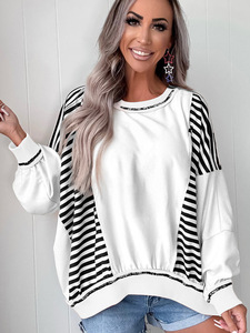 2025年秋季新款套头露缝上衣女欧美宽松简约风拼色印花长袖卫衣女