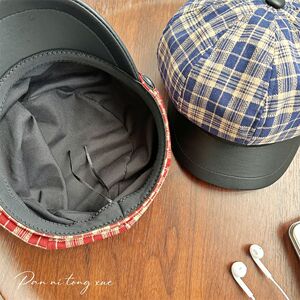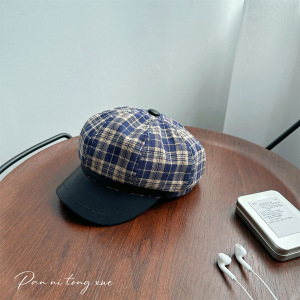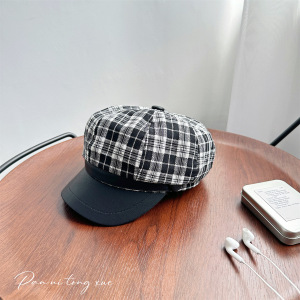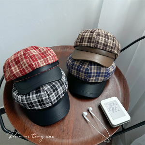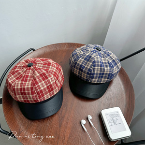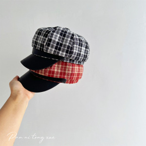 韩版新款儿童皮檐格纹帽子英伦风贝雷帽文艺复古时尚宝宝南瓜帽