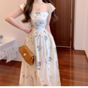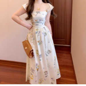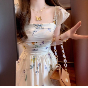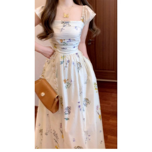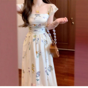 法式小飞袖碎花连衣裙子女夏季2025新款海边度假气质绝美收腰长裙