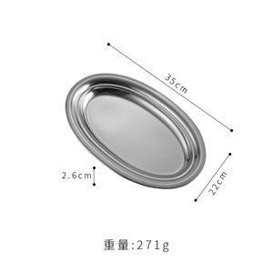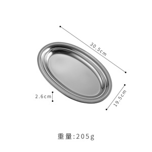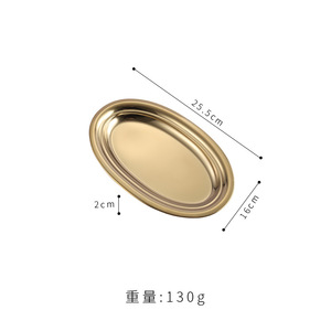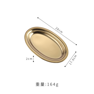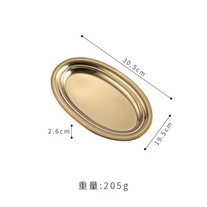 韩式不锈钢椭圆盘子金色肠粉盘商用蒸鱼盘蛋形烧烤盘家用大号浅盘