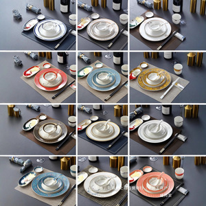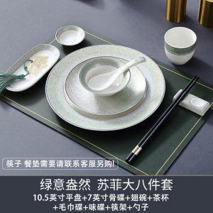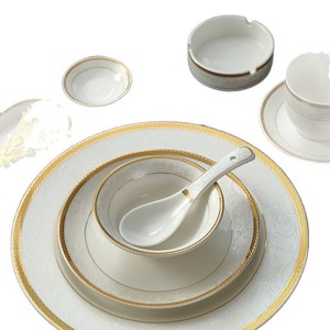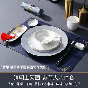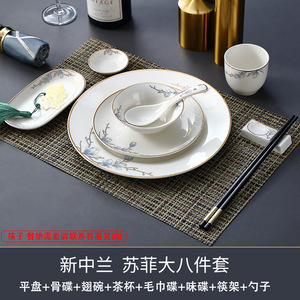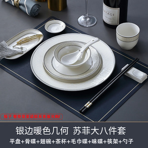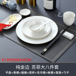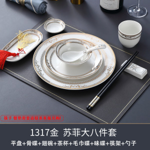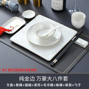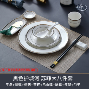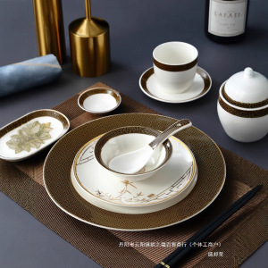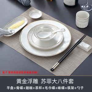 酒店摆台轻奢碗碟八件套装餐馆高级感金边高温餐具碗盘子2025新款
