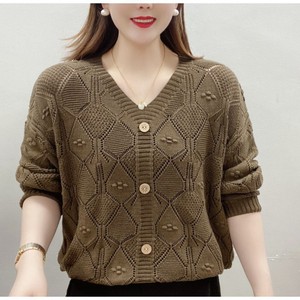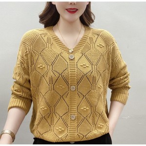 春季新款针织衫女士休闲宽松镂空领毛衣显瘦遮肚洋气时尚妈妈潮流