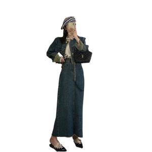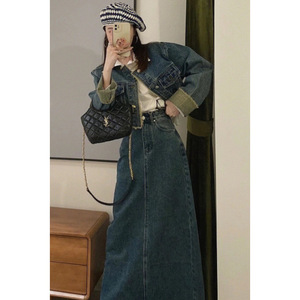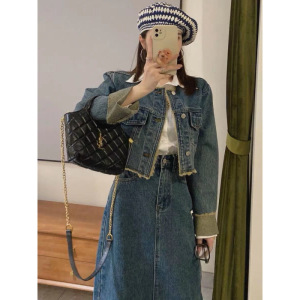 新品感炸街减龄网红盐系穿搭御姐港风牛仔外套半身裙两件套装秋女