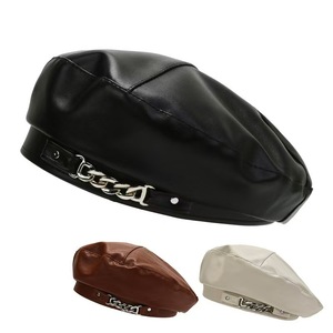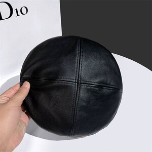 秋冬八角帽子女PU皮质帽女早秋时尚潮百搭英伦风酷显脸小贝雷帽