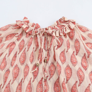 外贸2024年欧美风时尚休闲金属色线印花长袖衬衫女装上衣2505141
