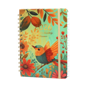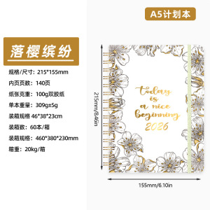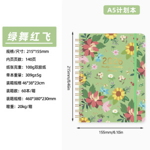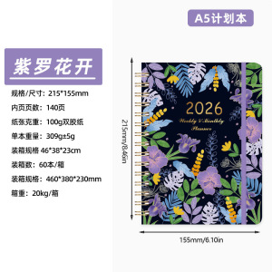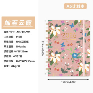 2026年亚马逊A5日程本每日计划本绑带外贸线圈本花卉笔记本定制
