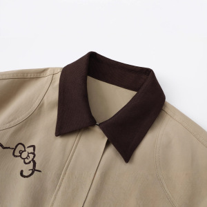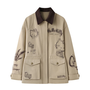 现货2025秋新款宽松卡通猫咪字母印花工装风牛仔外套70110439