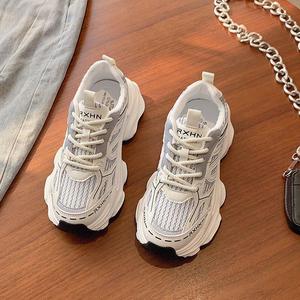 老爹鞋女鞋春秋季2025新款百搭厚底增高休闲鞋复古红色软底运动鞋