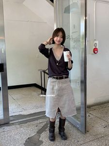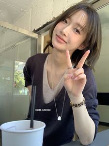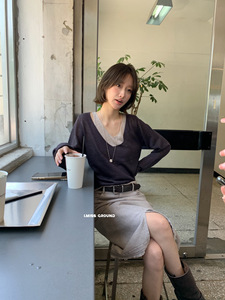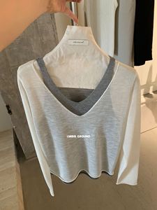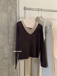 imiss 韩系假两件V领百搭通勤2025秋款舒适休闲女上衣冰丝针织衫
