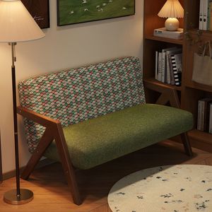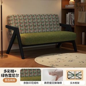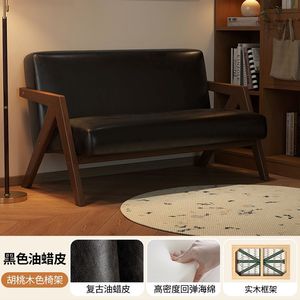 美式复古实木沙发中古风小户型双人客厅公寓酒店民宿布艺小沙发