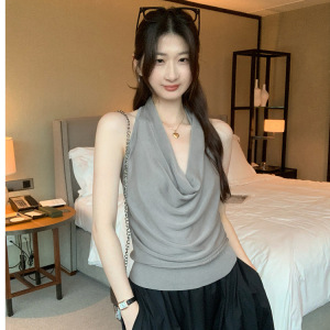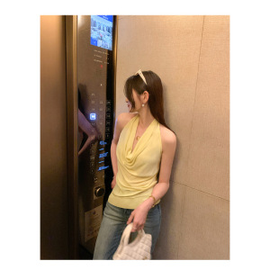 日系复古扭结挂脖吊带背心女2025夏洋气内搭小众别致外穿露背上衣