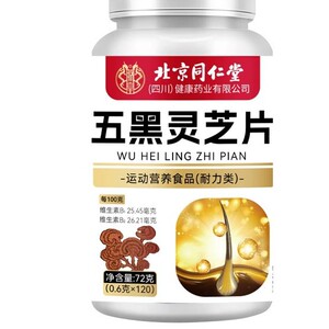 北京同仁堂五黑灵芝片 黑发养发72g/瓶一件代发