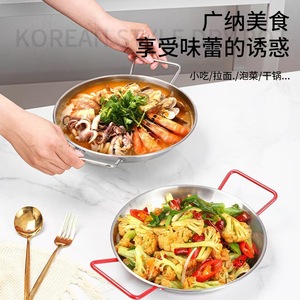 不锈钢海鲜盘双耳小吃盘商用韩式炸鸡专用盘沙拉意面盘平底干锅
