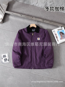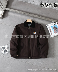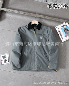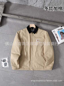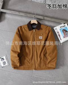 美潮卡哈风格底特律秋冬工装棉服洗水做旧帆布重工夹克高街外套