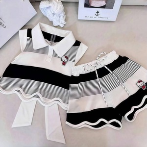 2025夏季新款女童甜美可爱套装中大童洋气条纹爱心上衣短裤两件套