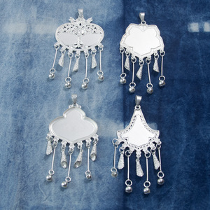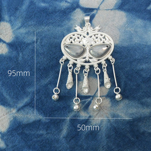 新款合金哑银色葫芦花盘宋锦贴布材料点翠宋锦贴皮饰品配件材料
