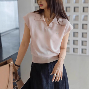 白色亚麻天丝翻领针织短袖女2025新款夏气质短款POLO衫上衣A5361